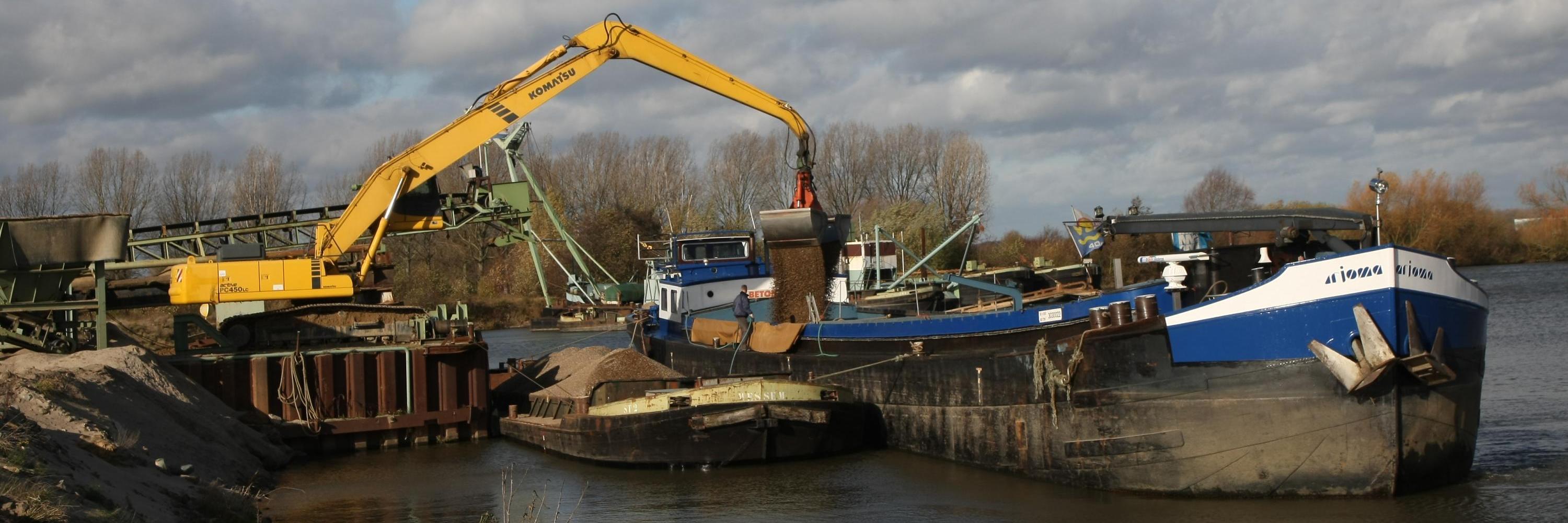 De overslaghaven van Edelzand, tussen Maasbracht en Stevensweert. De plaats ligt vlakbij de scheepswerf van Maasbracht.