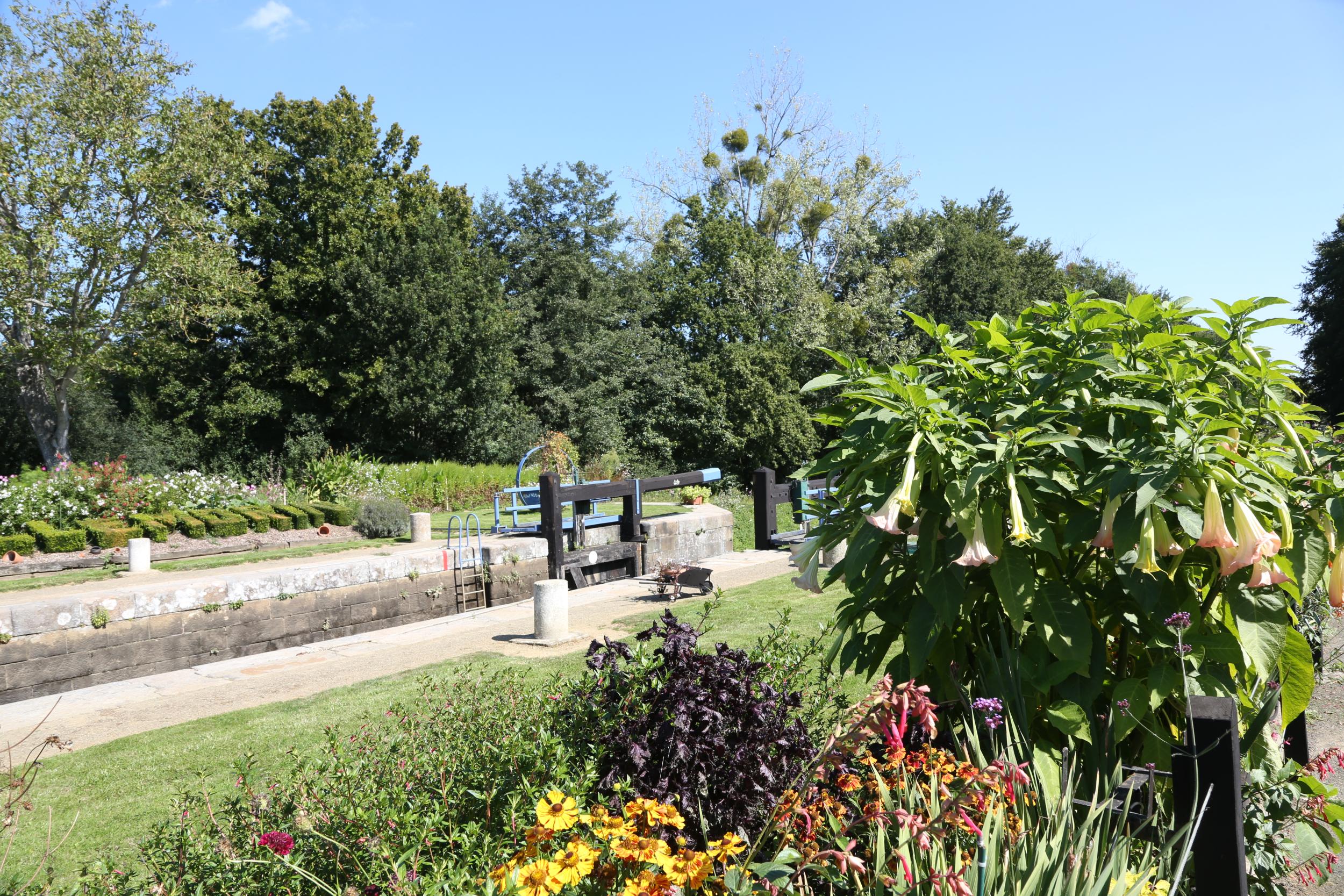 De sluis heeft als laatste in de opvaart, aan het bovenhoofd een extra setje deuren.