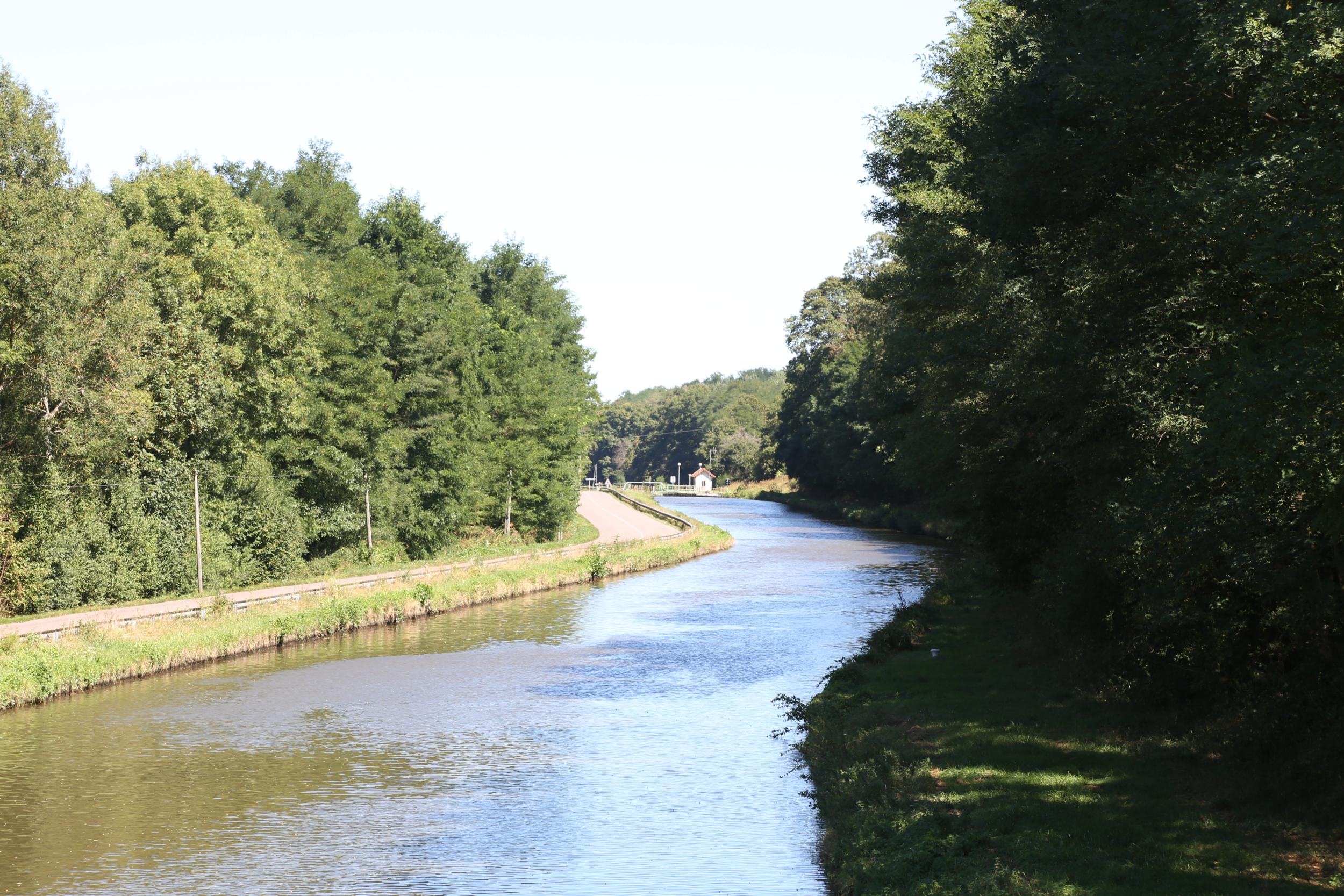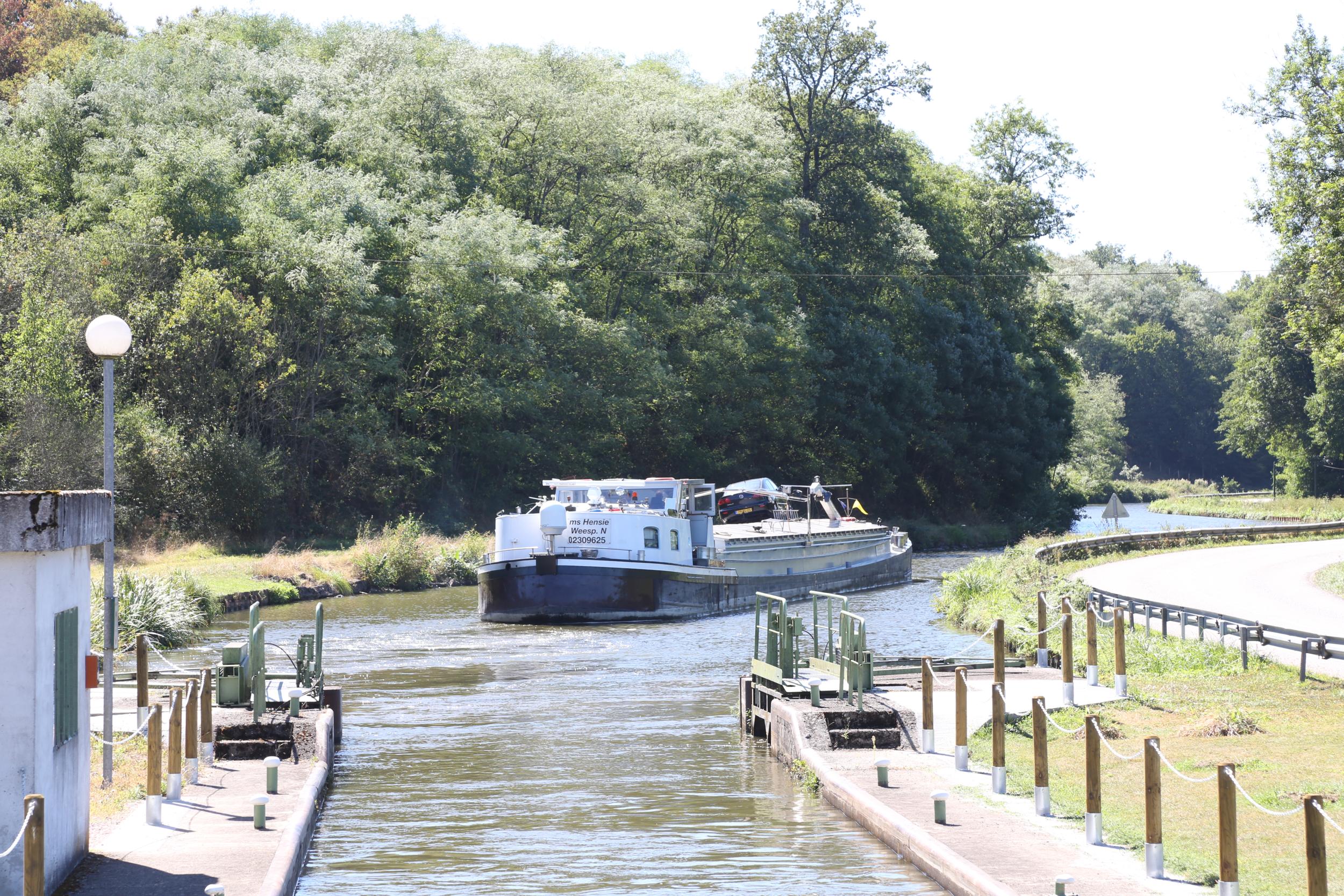 Langs de sluis en het kanaal loopt de regionale weg D974.