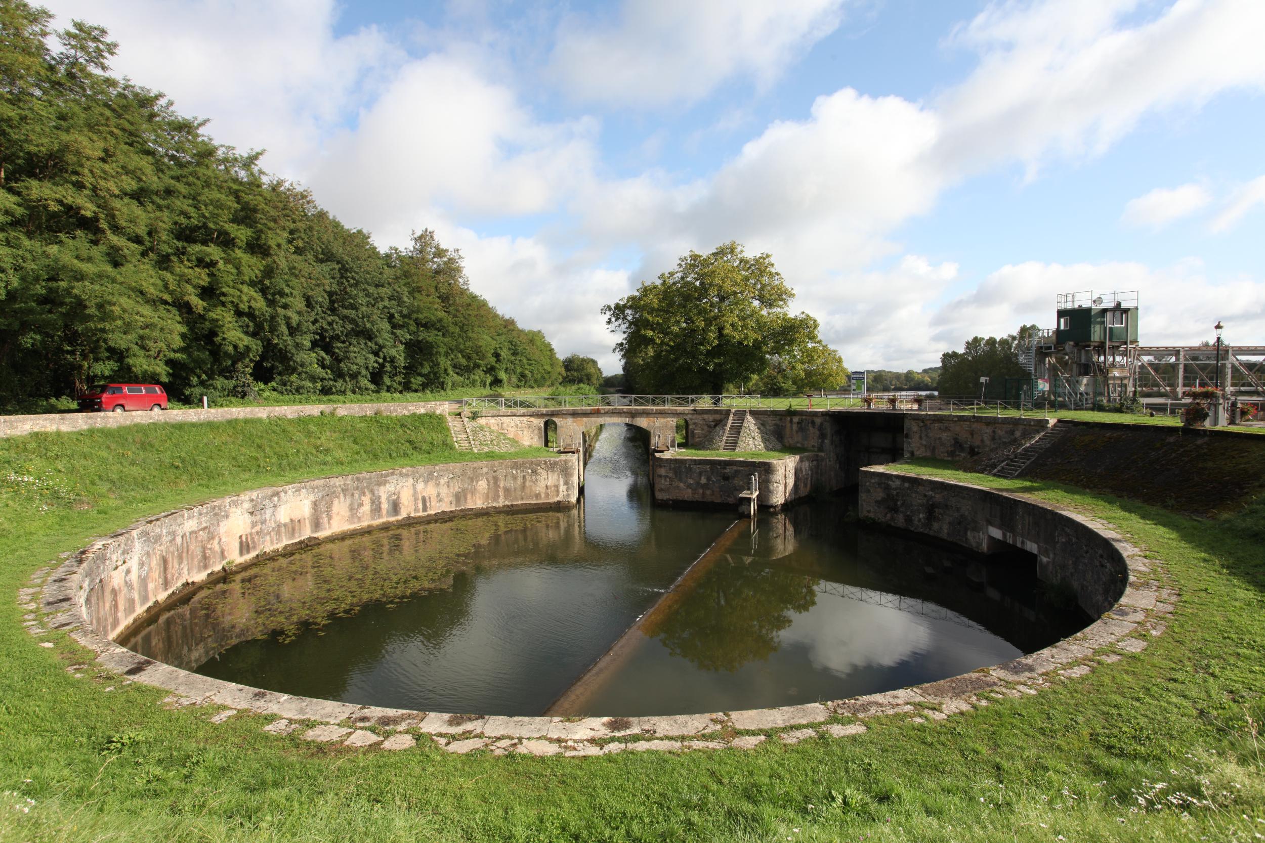 De ronde sluis is één van de twee ronde sluizen, al heeft de andere ronde sluis haar mooie ronde vorm verloren door de aanpassing naar Freycinet maten. De ronde sluis van Lorrains heeft deze aanpassing niet gekregen, de scheepvaart was toen al ver verdwenen door deze sluis.
