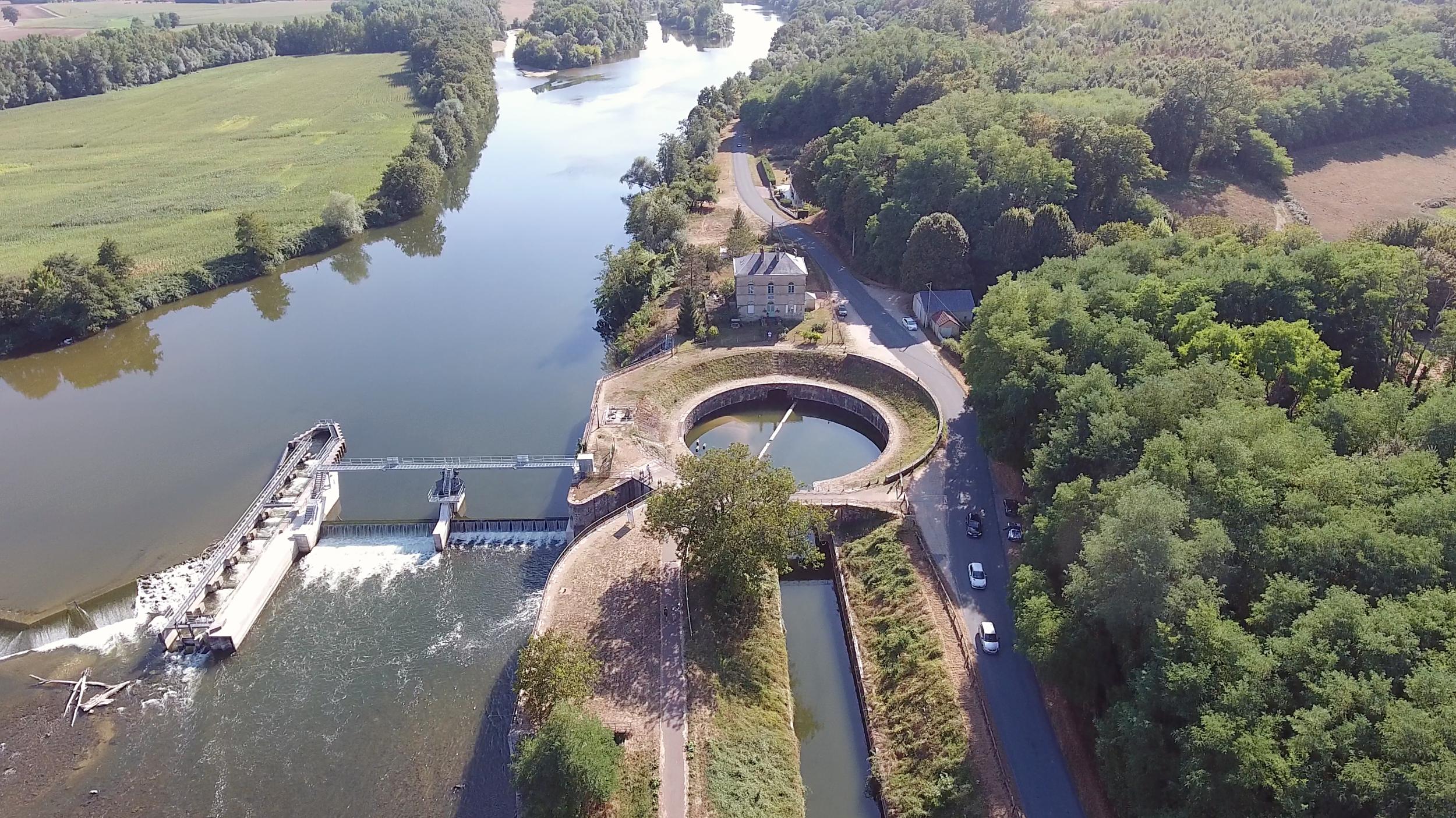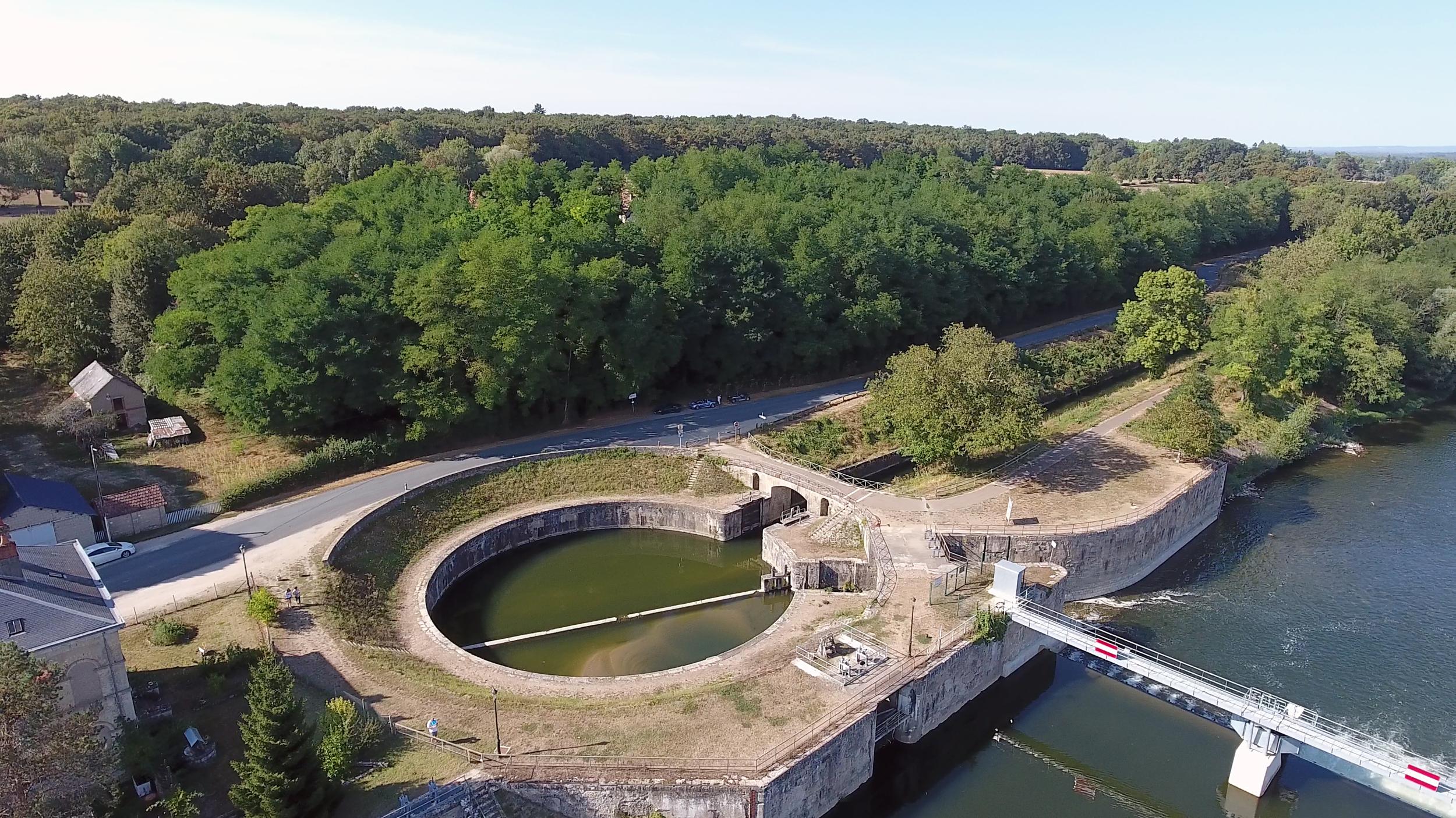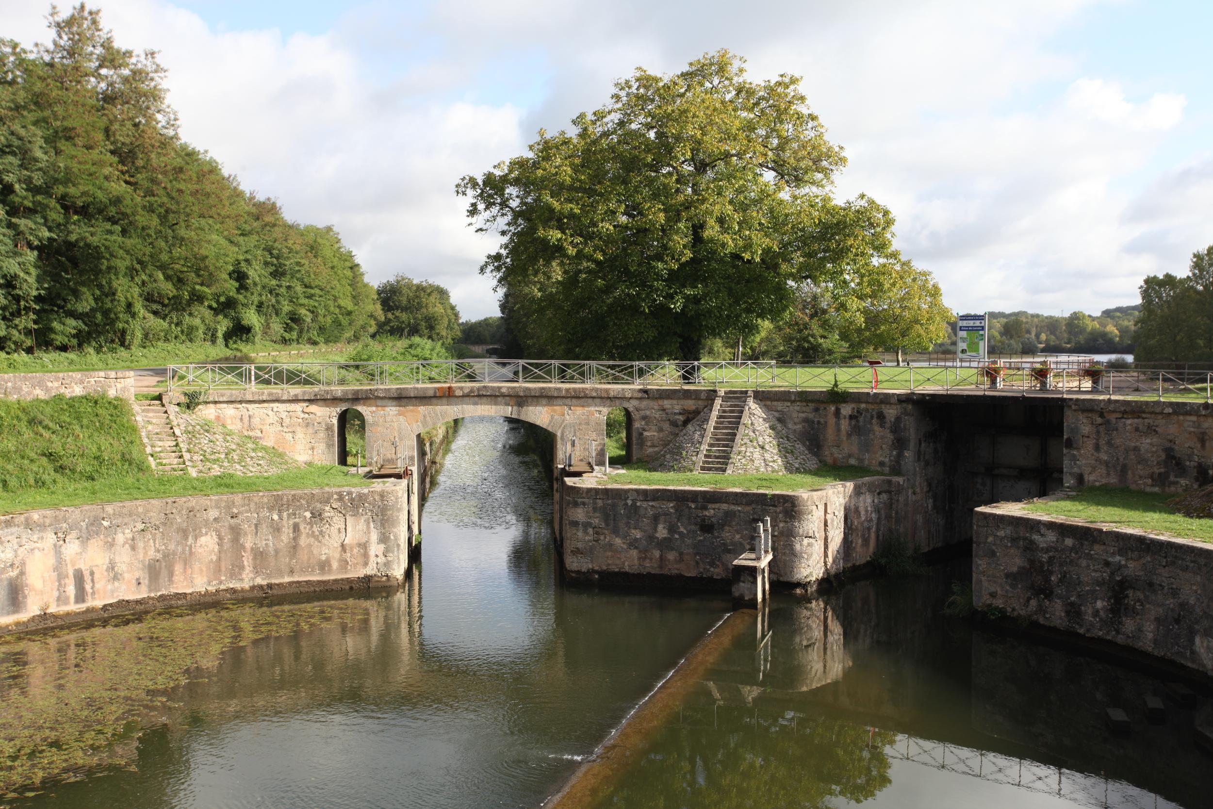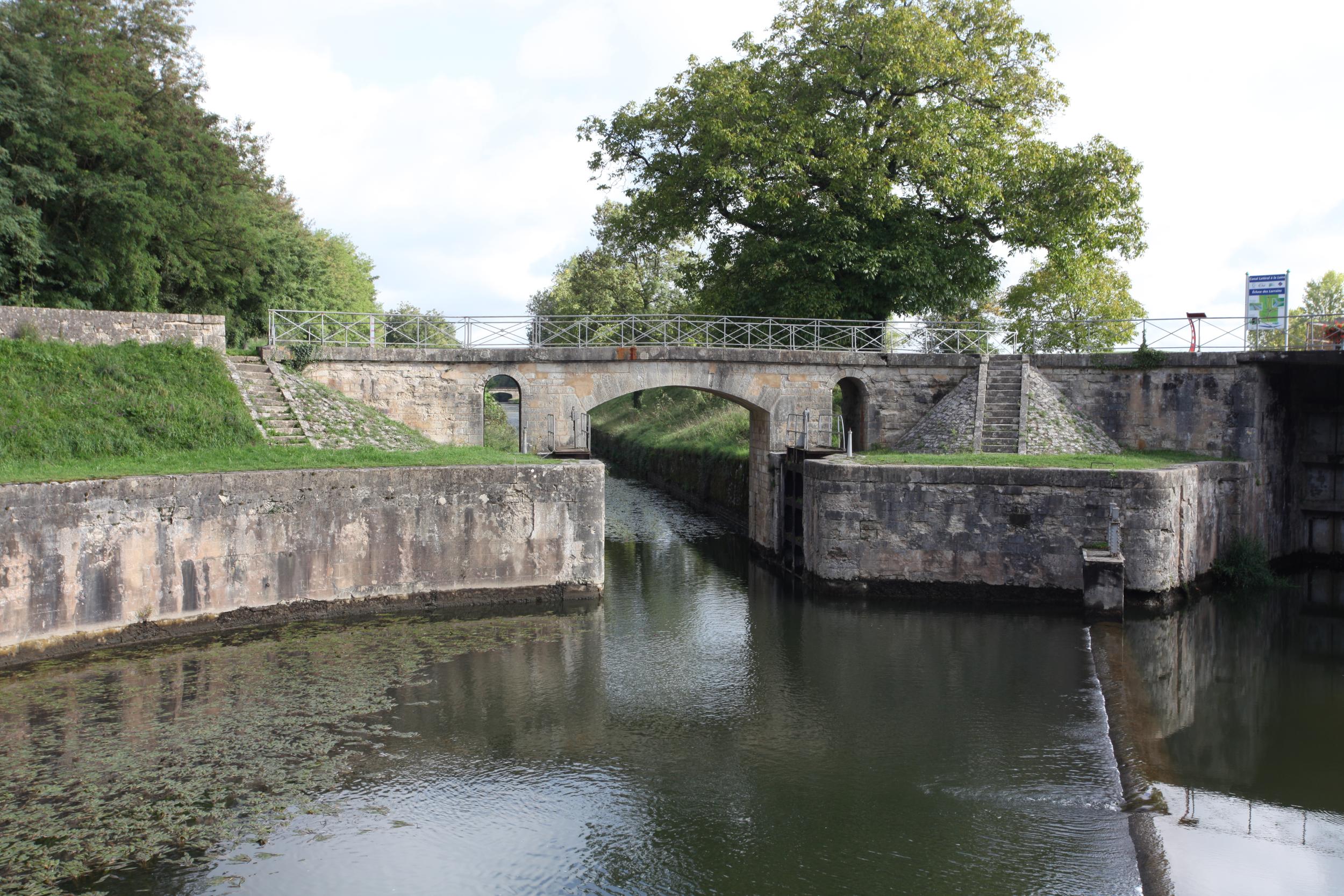 Het kanaal begint bij de ronde sluis van Lorraine. Deze laat het het water vanaf de rivier de Allier in om het kanaal te voeden. Naast de sluis ligt een stuw om voldoende hoogteverschil te creeeren om het water op natuurlijke wijze richting het kanaal te laten stromen.