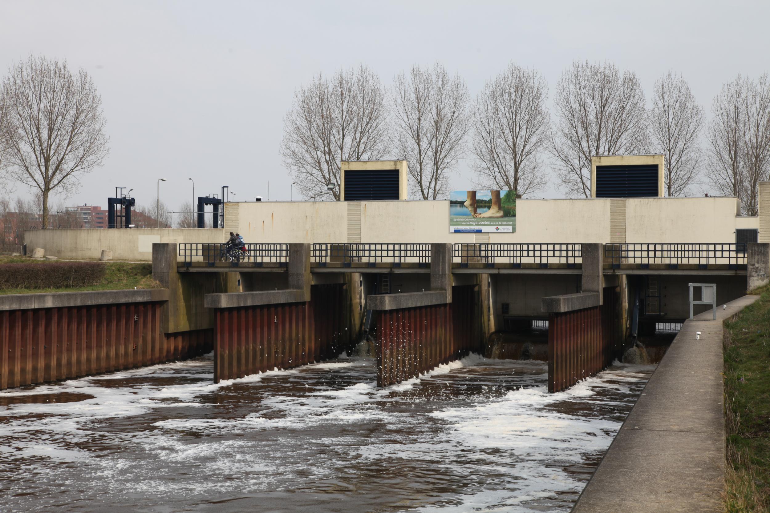 De spuisluis zorgt voor het afwateren van de Dieze, maar beschermt ook tegen hoog water van de Maas.