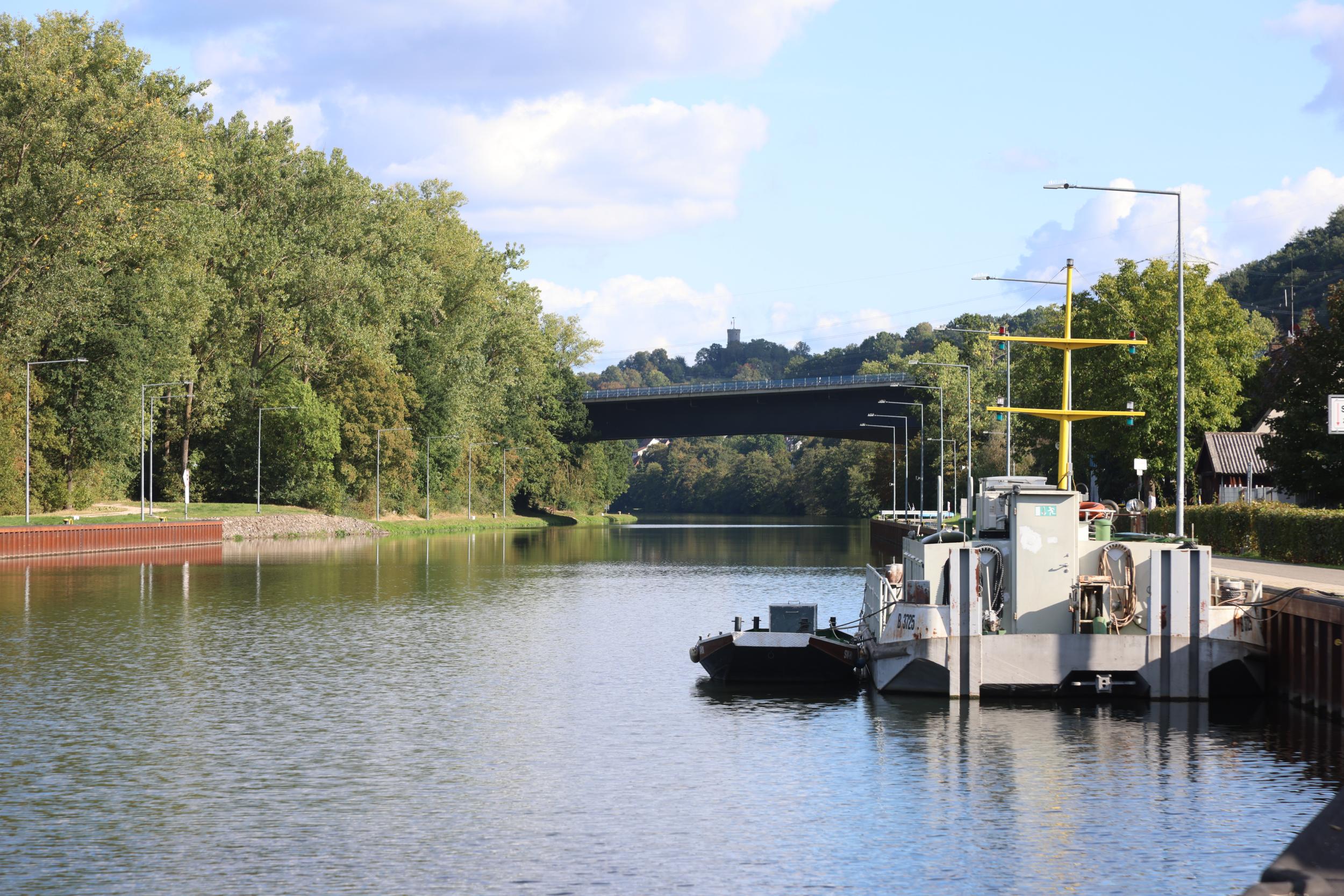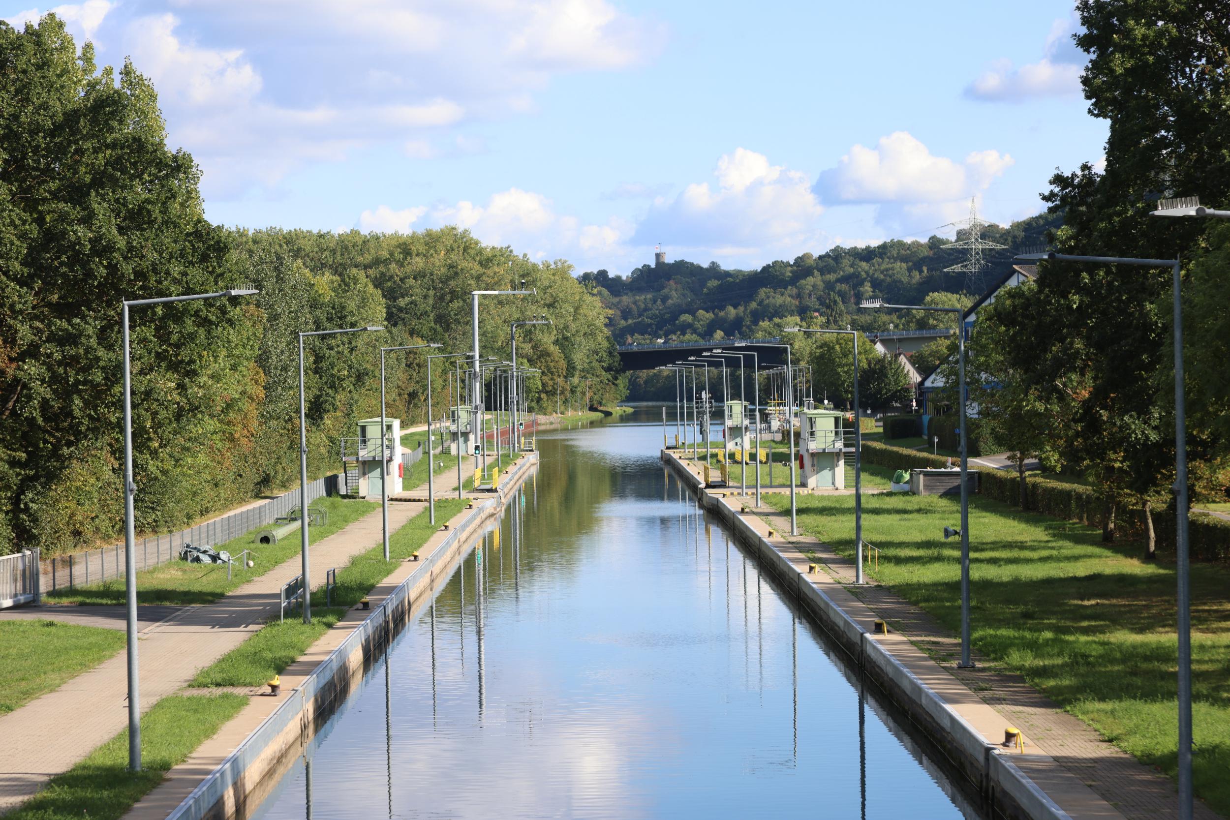 In Duitsland zelf is de sluis bekend als Schleuse Limbach. De sluis heeft het verval van 5.36 meter. een sluis, een stuw