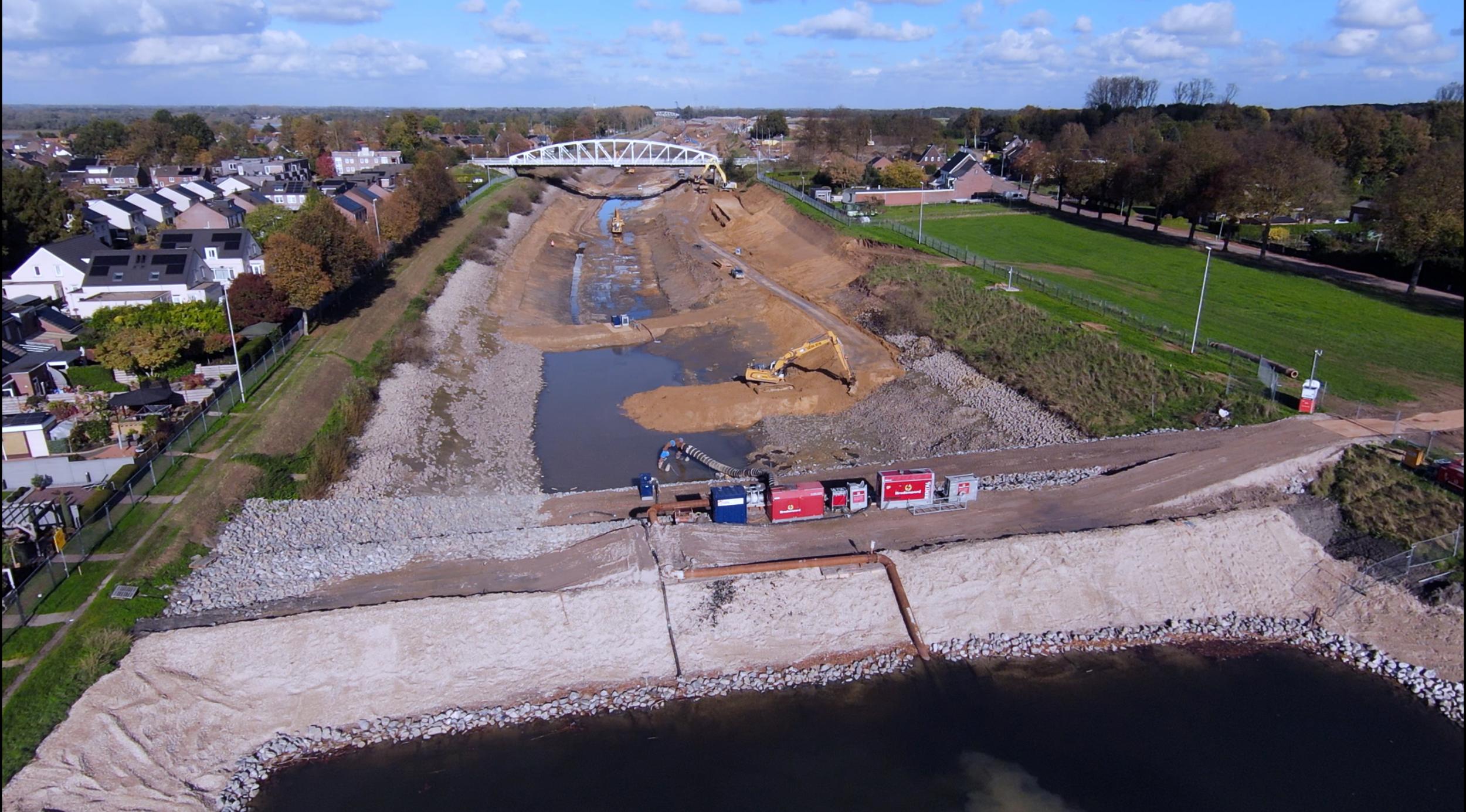 Na het vollopen van de bouwkuip bij de werkzaamheden aan het Julianakanaal tussen Berg aan de Maas en Obbicht in februari 2023, werd er voor gekozen om de rest van de werkzaamheden ‘in den droge’ uit te voeren. Hiervoor werd 24 augustus 2024 het kanaal tussen Berg aan de Maas en sluis Born gestremd, een tijdelijke dam bij Berg aan de Maas in het kanaal gelegd, en werd het kanaal afgelaten en leeg gepompt.