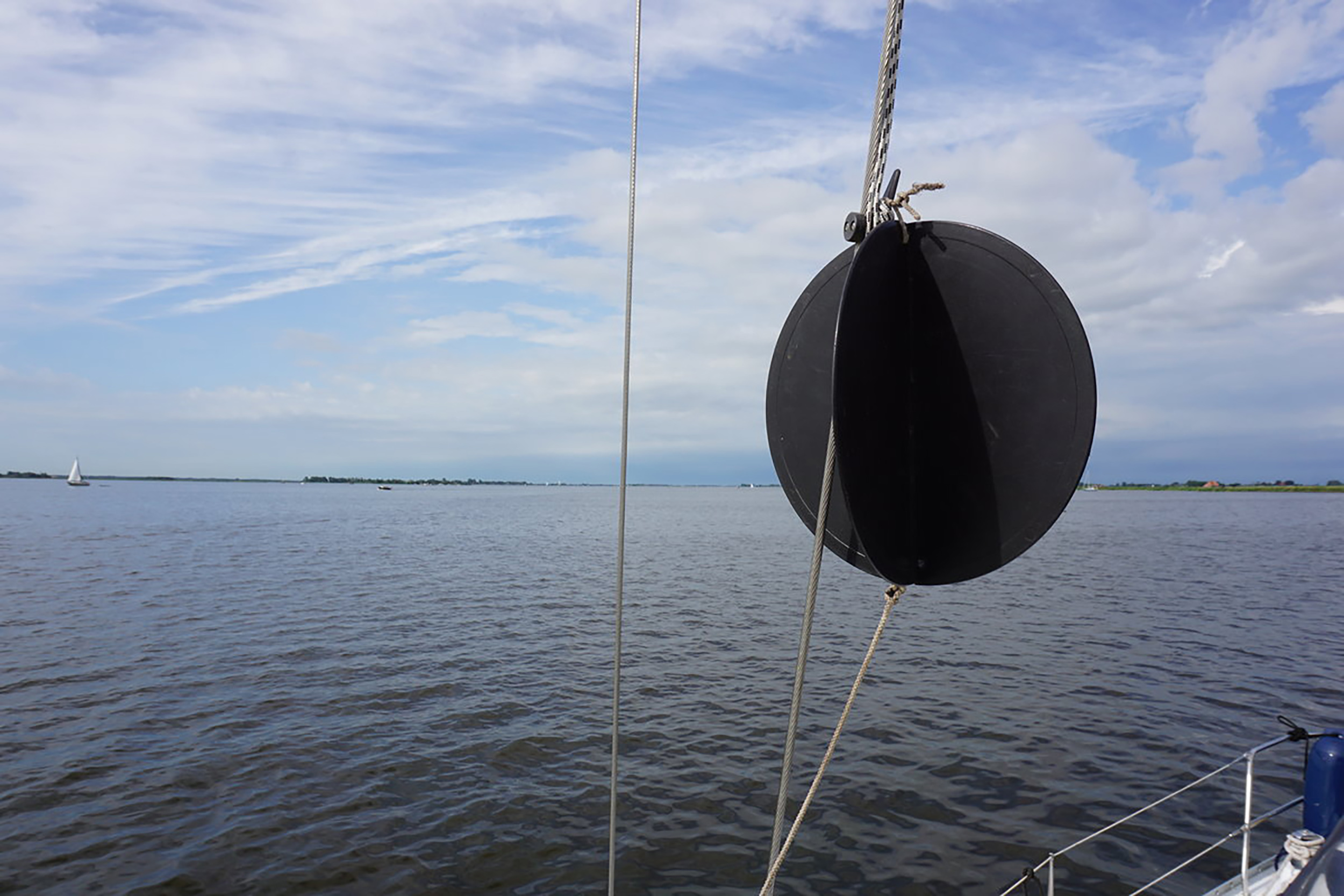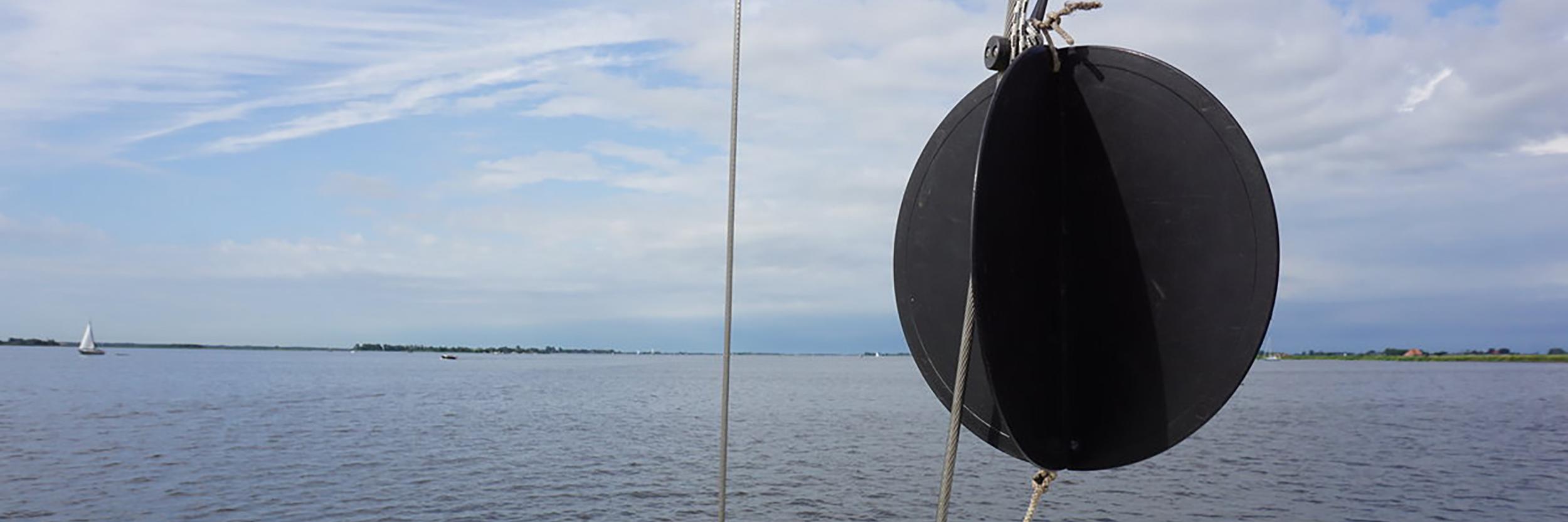Een zwarte bol is een dagteken voor schepen die op anker liggen. 's Nachts is het teken een ankerlicht.
