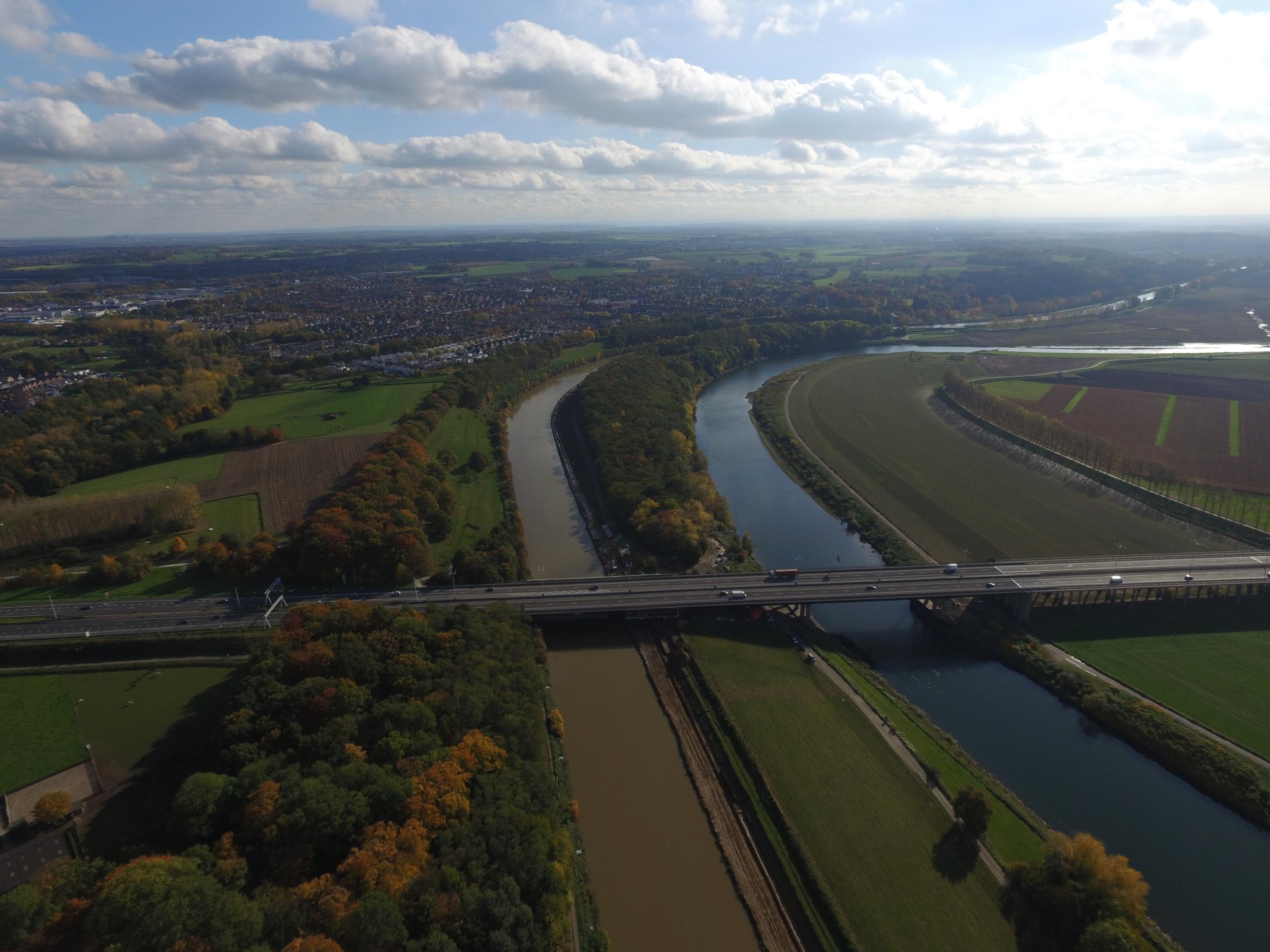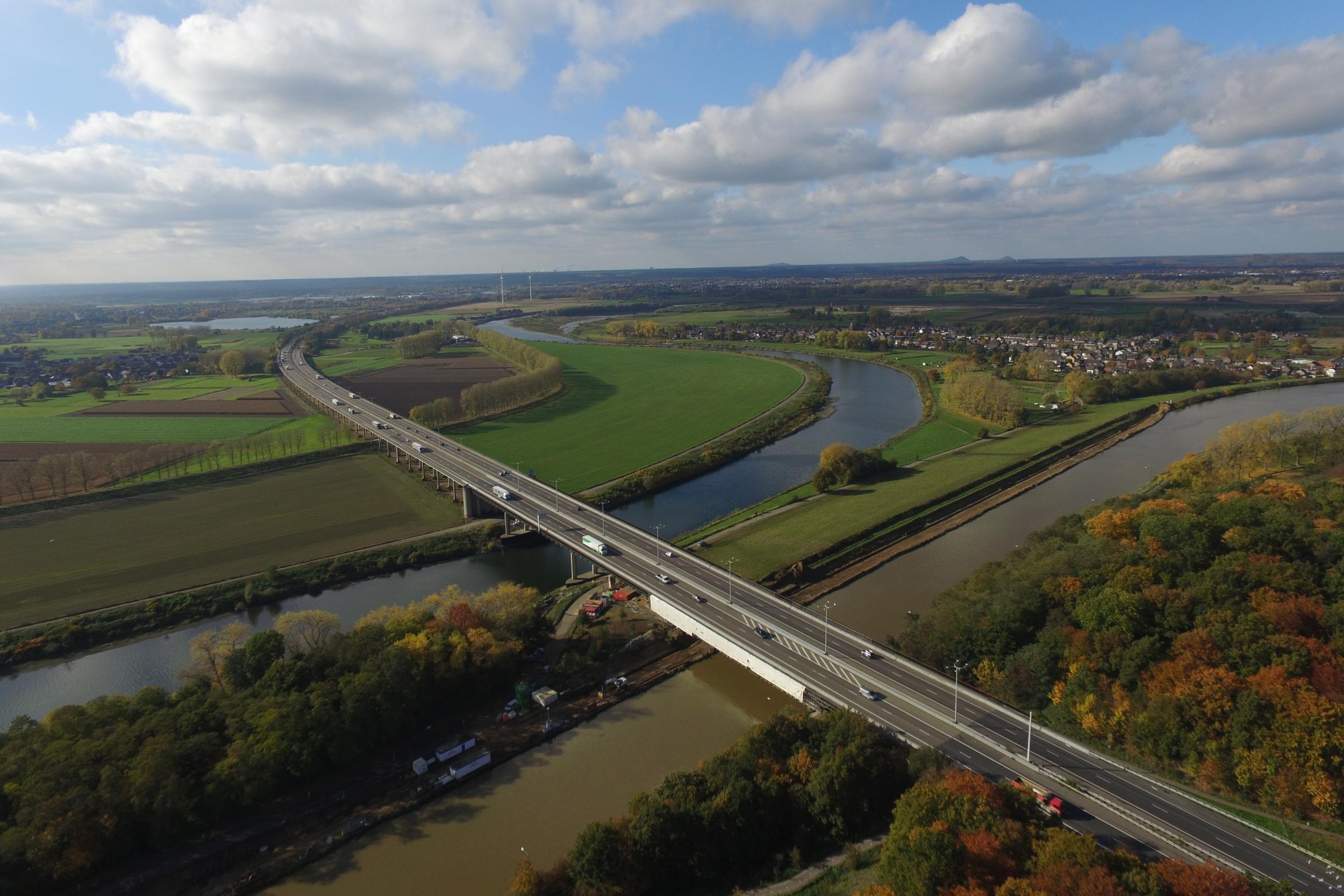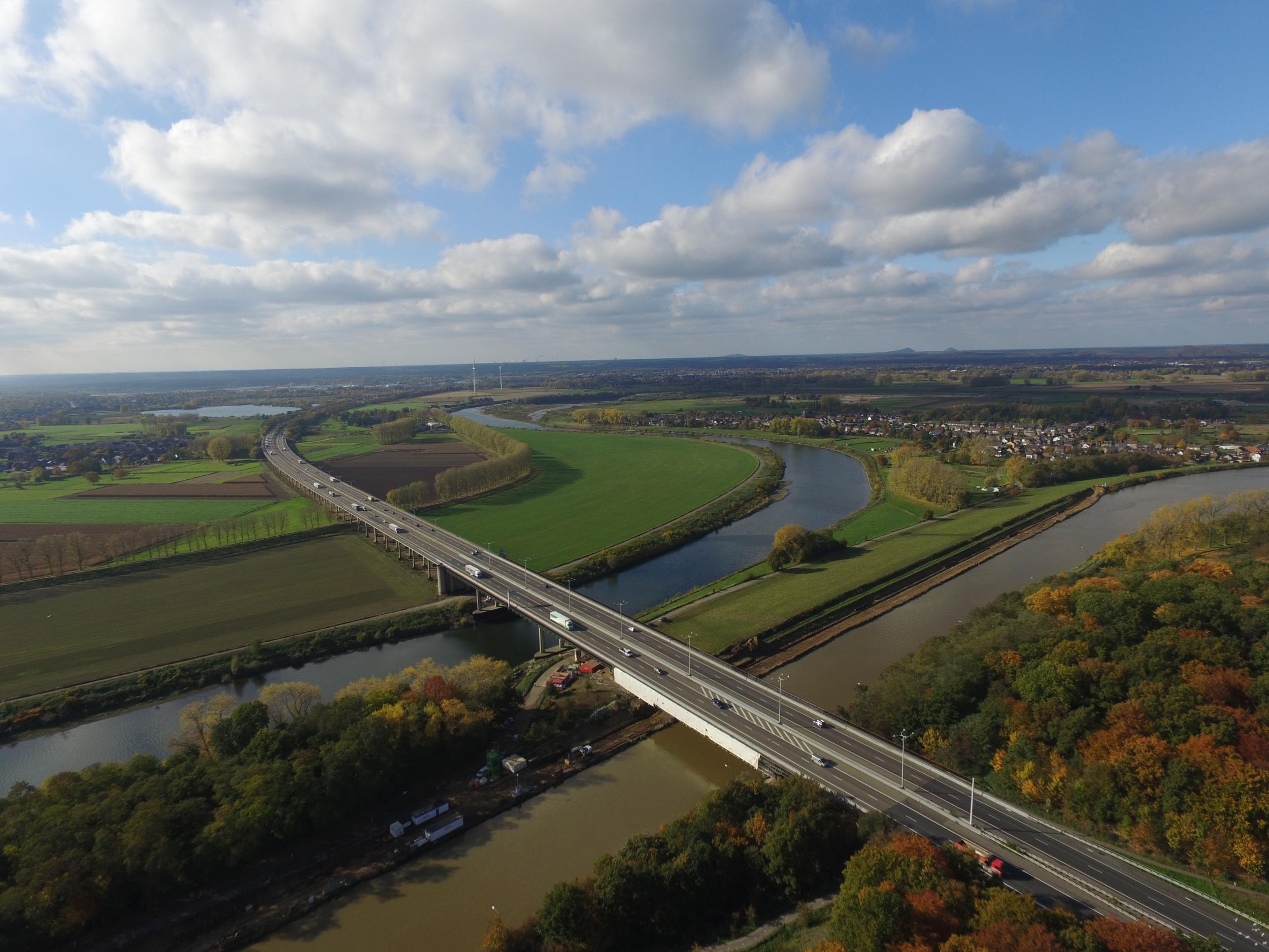 De brug gaat over het kanaal en de Grensmaas over, en daarmee ook de Belgisch Nederlandse grens.