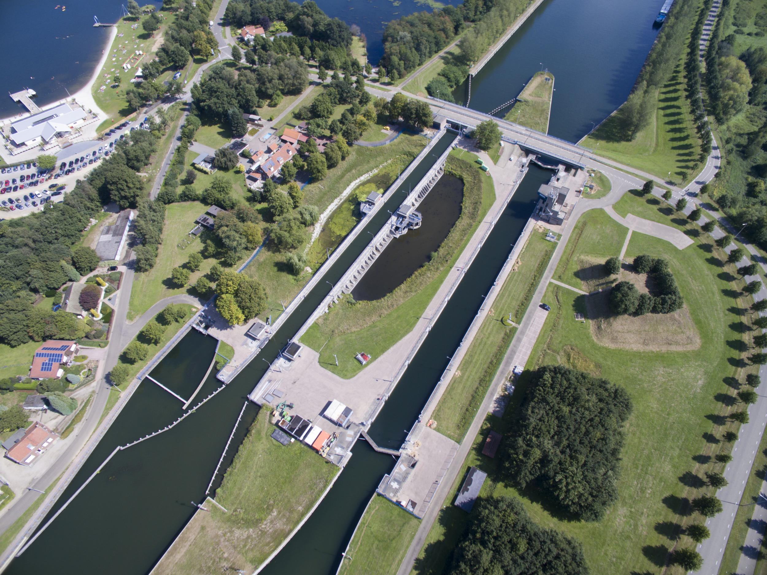 De oude sluis heeft spaarkommen om schutwater op te vangen en te hergebruiken. De nieuwe sluis heeft drijfpalen. Naast de sluis is een pompgemaal met twee pompen om het water van beneden naar boven te pompen als het een droge tijd is, en er weinig Maaswater beschikbaar is om de Brabantse kanalen te voeden.