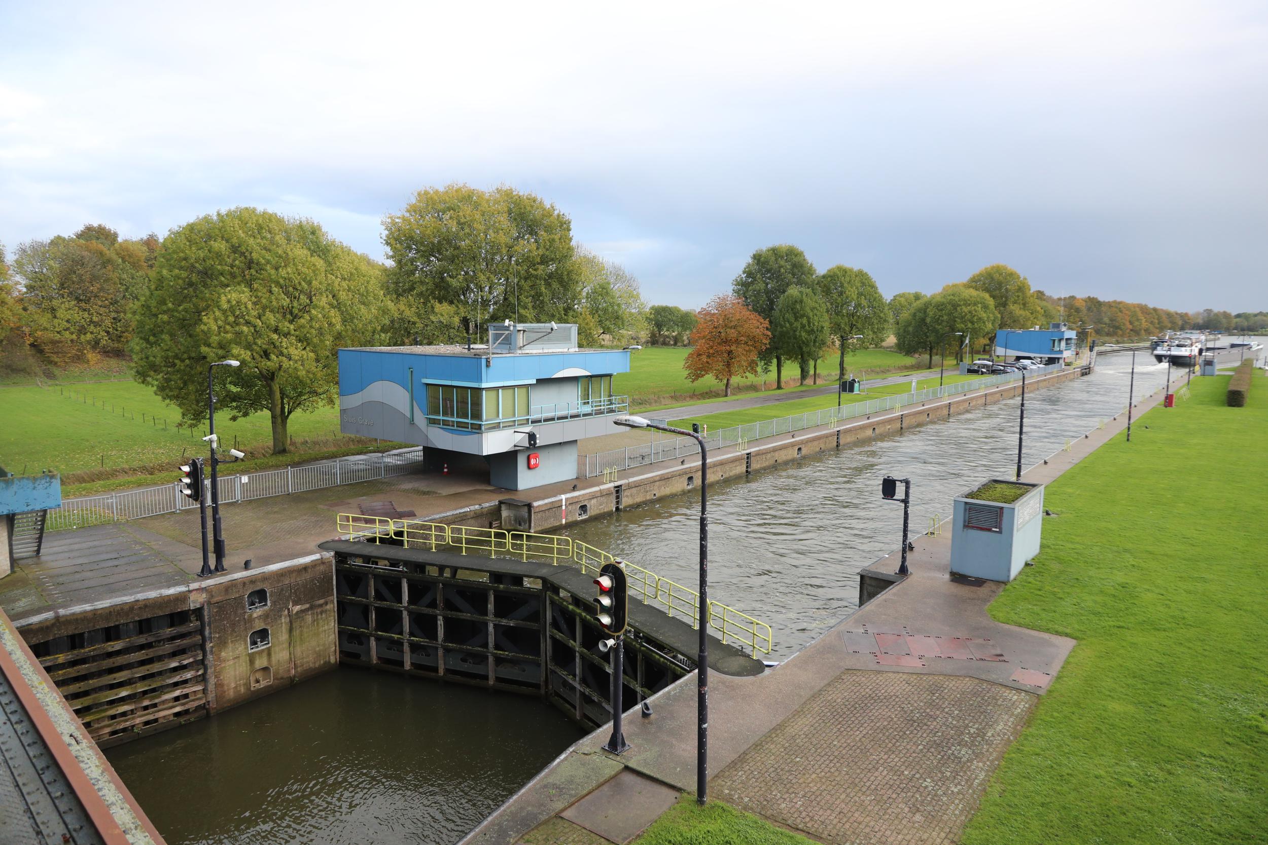 Ook sluis Grave ligt in twee provincies. De sluis, de oude sluis en de helft van de stuw ligt in Gelderland, de rest in Noord Brabant.