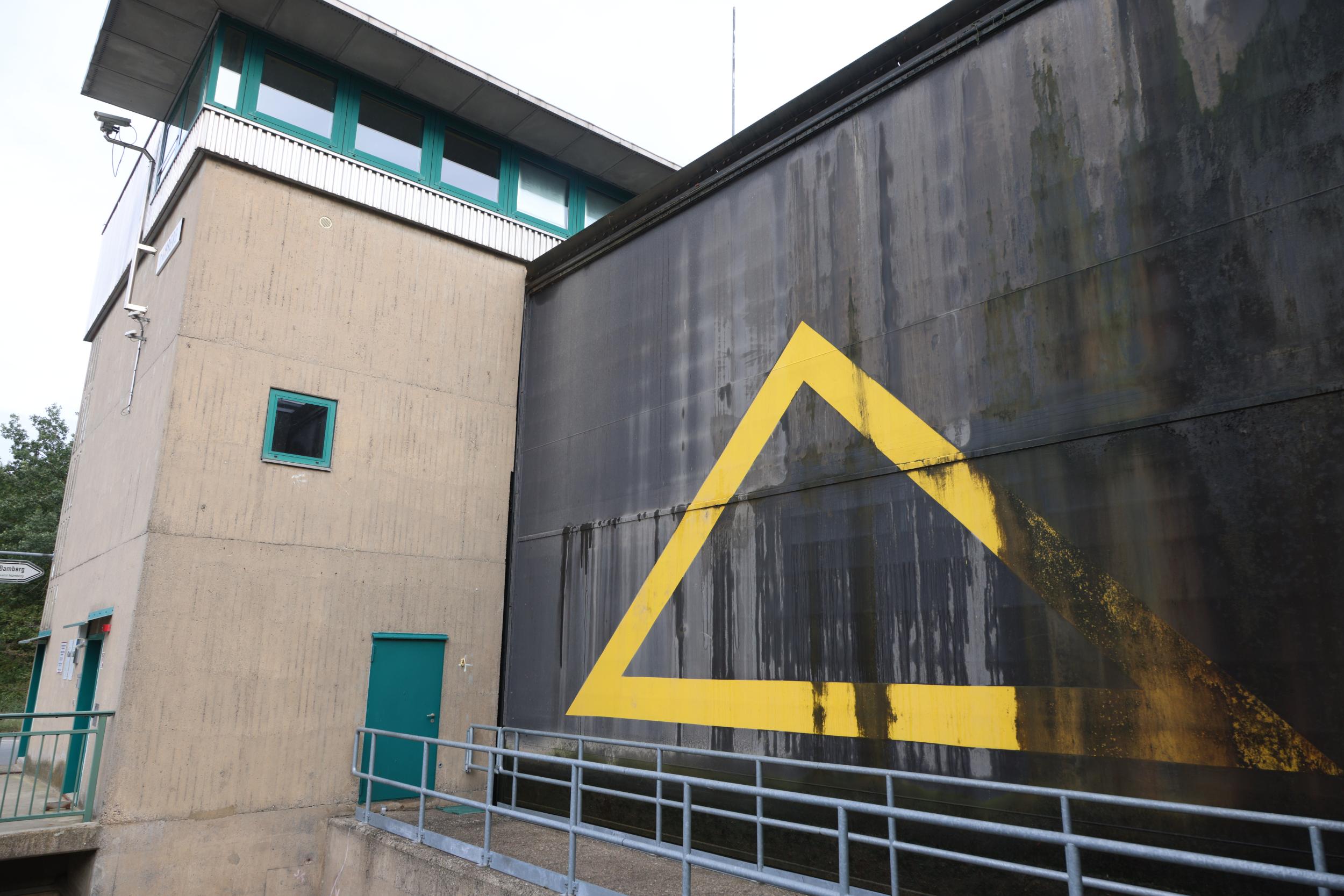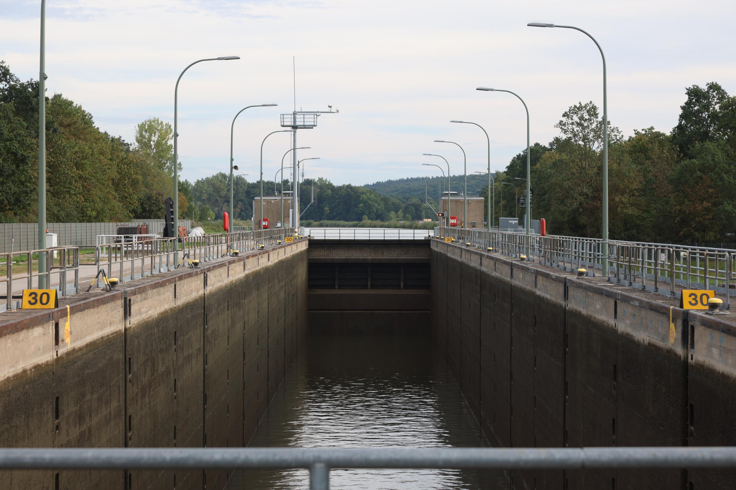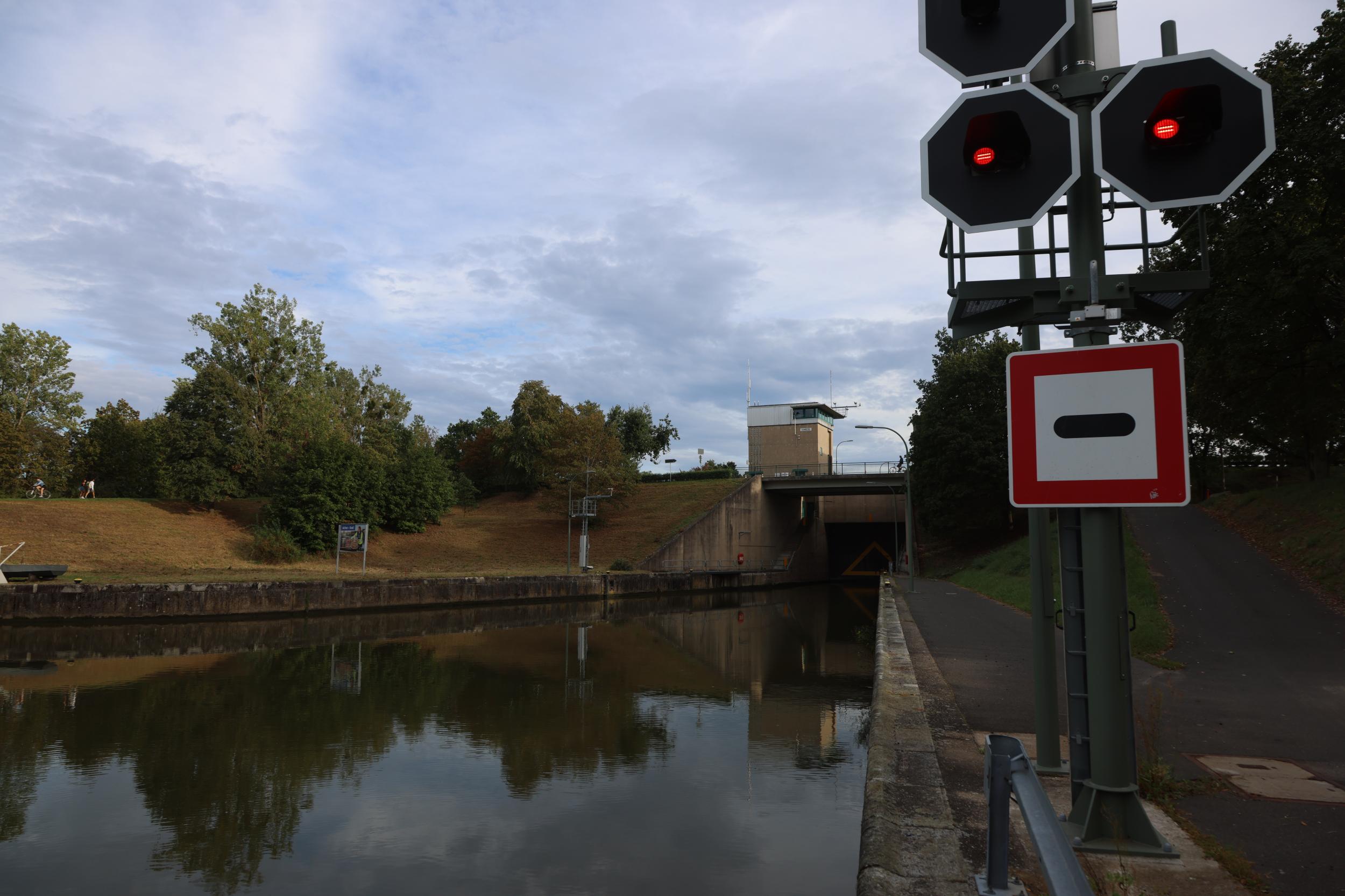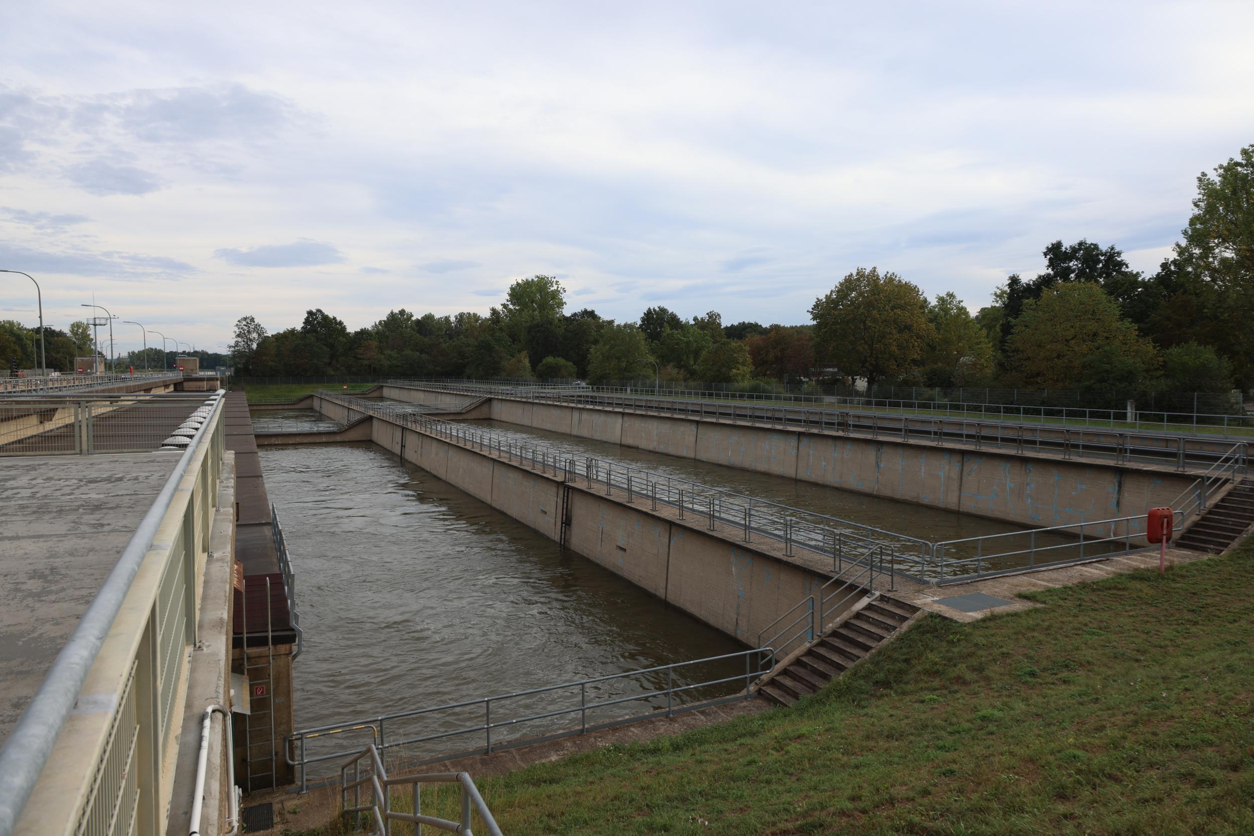 In Duitsland zelf is de sluis bekend als Schleuse Bamberg. De sluis heeft het grote verval van 10.94 meter. een sluis, een vaste brug