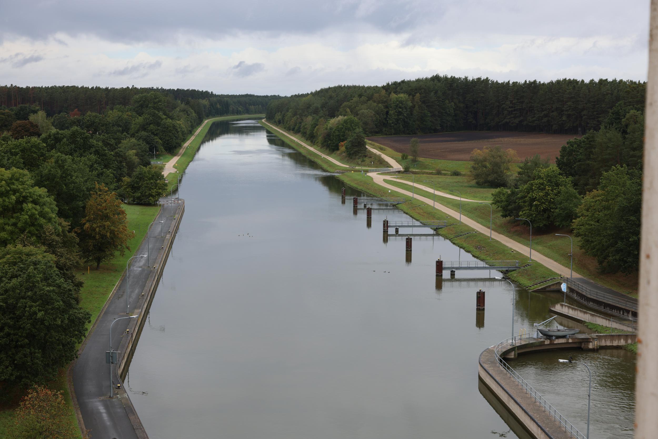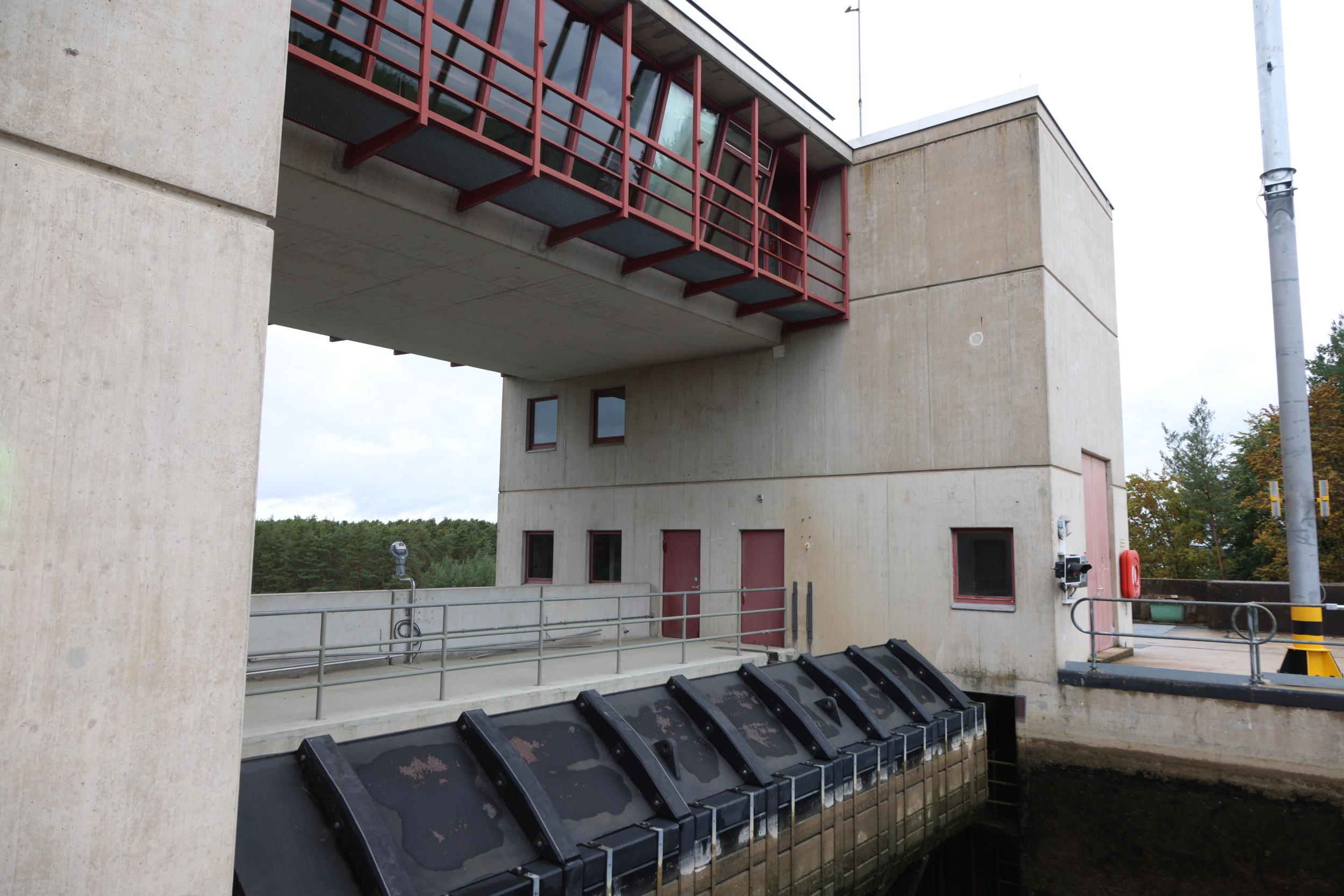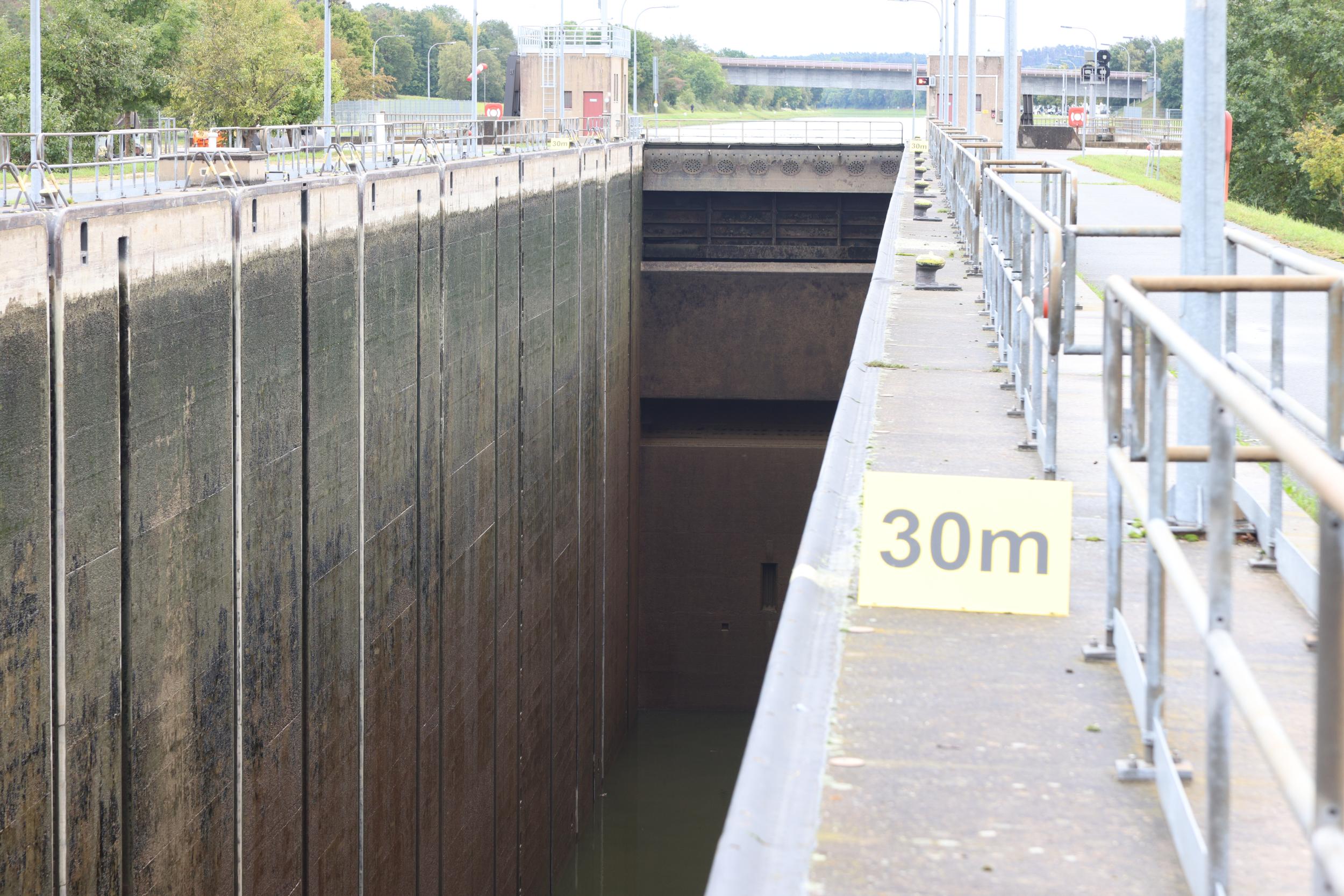In Duitsland zelf is de sluis bekend als Schleuse Eckersmühlen. De sluis heeft het enorme verval van 24.67 meter. een sluis, een vaste brug, een pompgemaal, een waterkrachtcentrale